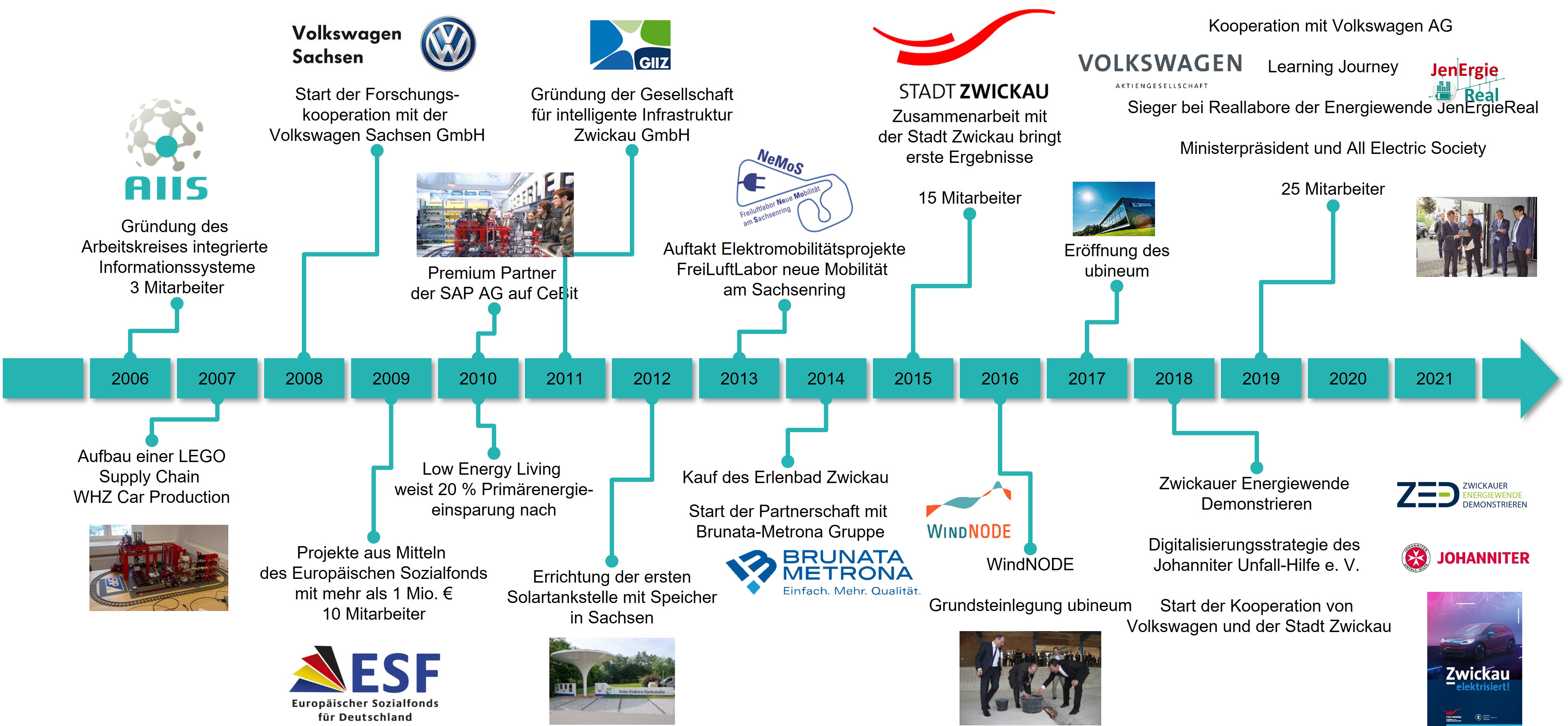 Seit dem Jahr 2006 besteht der Arbeitskreis Integrierte Informationssysteme (AIIS) an der Westsächsischen Hochschule Zwickau (WHZ). Gemeinsam mit unseren Partnern aus unterschiedlichen Branchen bearbeiten wir wissenschaftliche und industrielle Projekte mit Forschungs- oder Dienstleistungscharakter. Heute arbeiten rund 40 Wissenschaftlerinnen und Wissenschaftler aus unterschiedlichen Bereichen zusammen an zentralen Themen und Fragestellungen auf dem Weg zur All Electric Society.