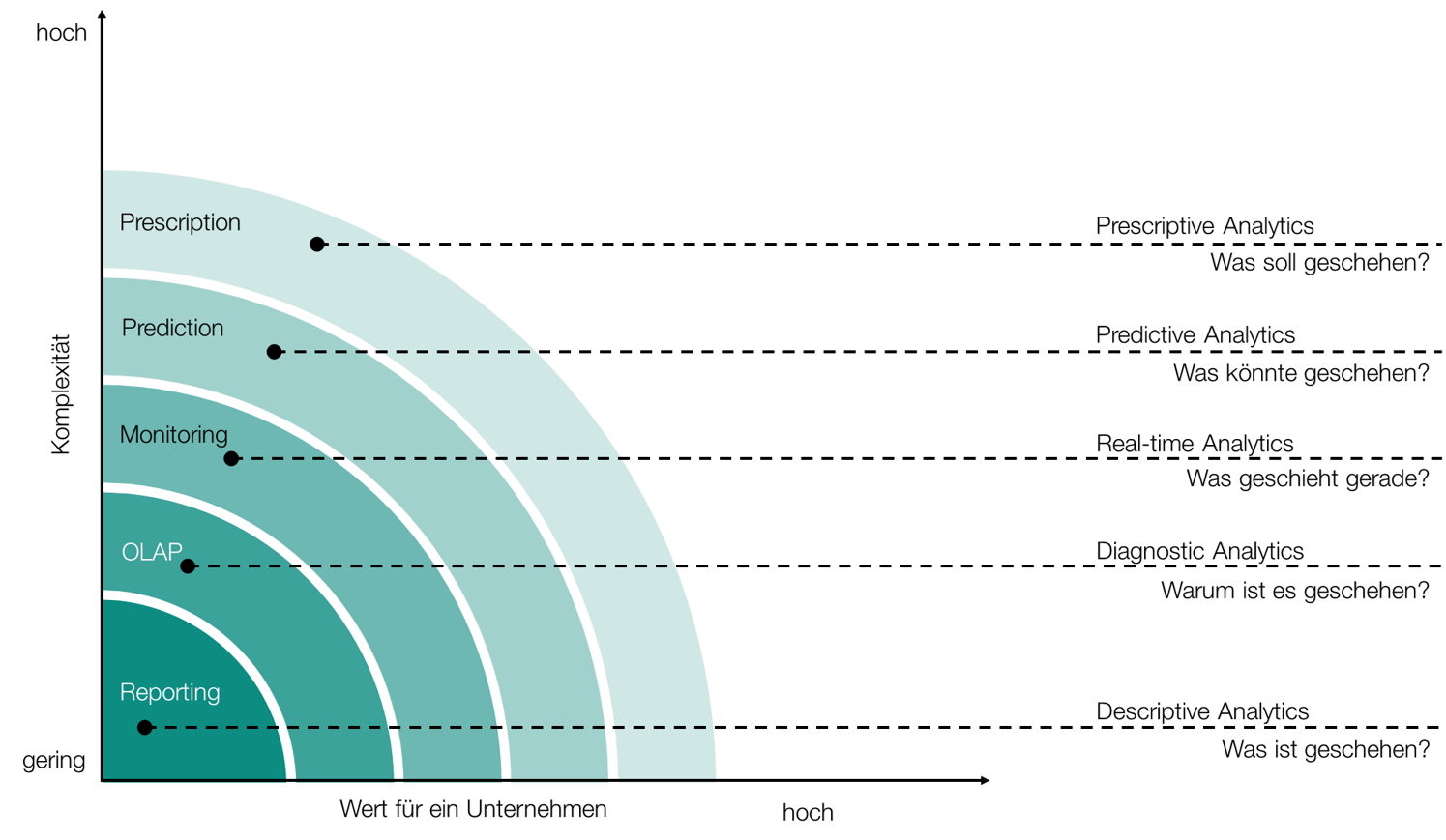 Durch verschiedene Analyseverfahren können wir komplexe Zusammenhänge mit Hilfe von Suchalgorithmen und mathematischen Verfahren auffinden und vorhersagen. Die dabei generierten Informationen können von Unternehmen genutzt werden, um bessere Entscheidungen zu treffen, Ziele zu definieren und umzusetzen.