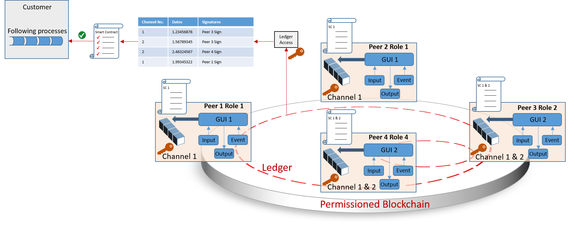 Der Arbeitskreis Integrierte Informationssysteme bietet hierzu die Möglichkeit, die Infrastruktur eines Netzwerks zu modellieren. Dazu bedarf es einer Analyse notwendiger Hierarchien der beteiligten Akteure sowie deren Abbildung mit Authentifizierungs- und Verschlüsselungsmethoden. Des Weiteren gilt es, die Businesslogik in Form von Smart Contracts zu formulieren und so den Geschäftsbetrieb zu ermöglichen. Abhängig von der Rolle des Beteiligten wird anschließend der Zugang zum Netzwerk und damit die Interaktionsmöglichkeit durch eine visualisierte Schnittstelle realisiert. Damit bieten wir eine umfassende Expertise zum gewinnbringenden Einsatz der Blockchain-Technologie.